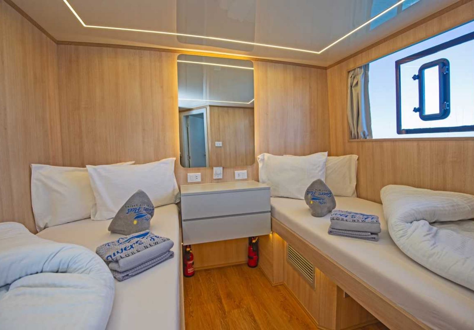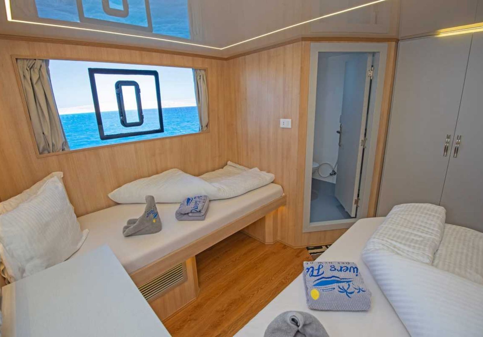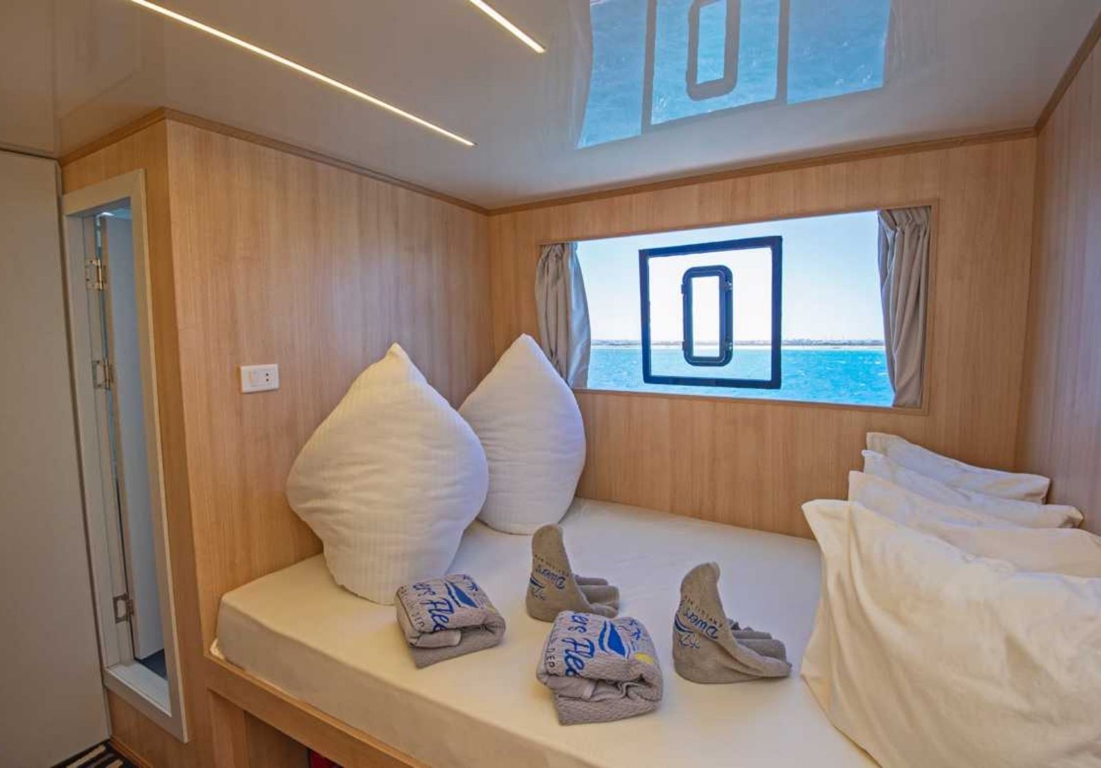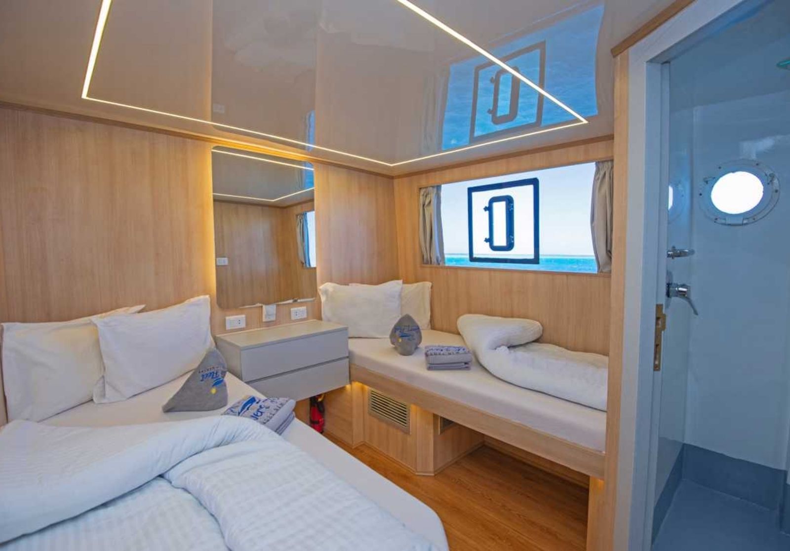 El barco cuenta con unos 12 camarotes, lo que garantiza espacio para 24 buceadores. Es ideal para crear comunidad y viajar en compañía de otros buceadores como tu, con la misma vibra y las mismas ganas.