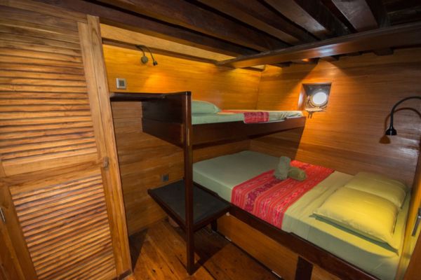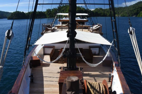 Botada en 2001, esta goleta tradicional de madera, (Phinisi en el idioma local), fue construida en el sur de Célebes por las tribus marineras Bugis, utilizando maderas tropicales y siguiendo métodos tradicionales de sus ancestros. Hecho a medida bajo la supervisión directa de nuestro director de operaciones, fue construido por un buceador para los buceadores.